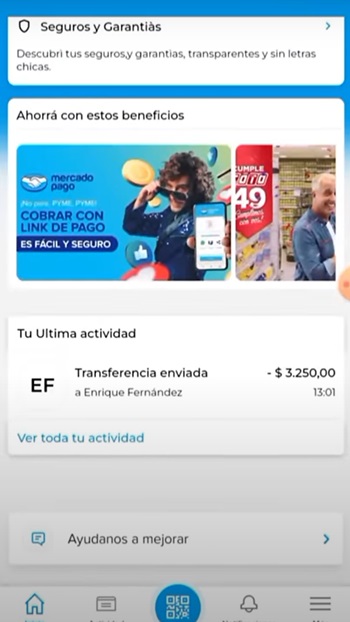 - Transferencias de dinero: los usuarios pueden enviar dinero instantáneamente a cualquier persona, ya sea dentro de la aplicación o a cuentas bancarias externas, con transacciones seguras garantizadas por los protocolos de seguridad de Mercado Pago.